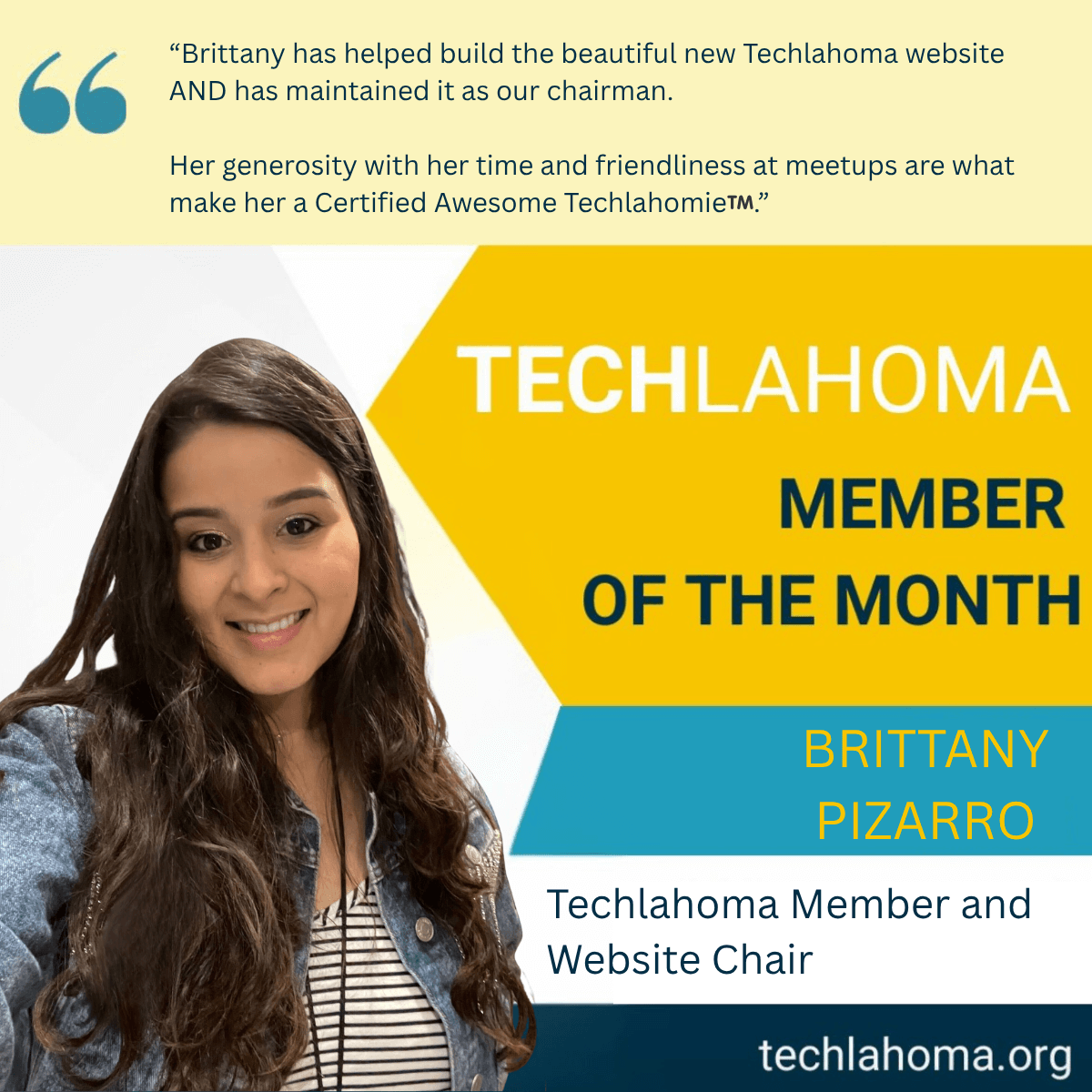 Brittany has helped build the beautiful new Techlahoma website AND has maintained it as our chairman.